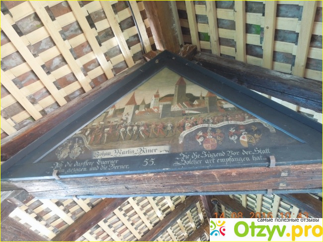 Характерной особенностью моста являются двухсторонние треугольные картины, размещенные на щипце его кровли. Цикл полотен, изображающих важные вехи истории Швейцарии, был создан во времена Контрреформации. Картины должны были воспитывать верность догматам католической церкви. Над циклом рисунков работал католический живописец из Цюриха Ганс Генрих Вегманн и его четверо сыновей.