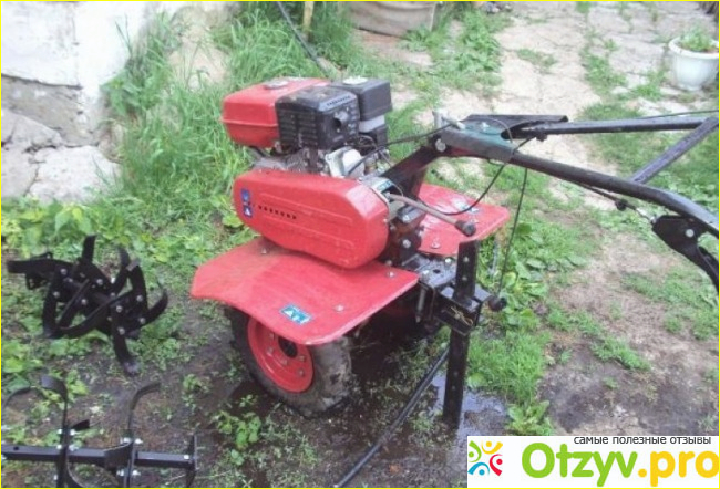 Если смотреть на управление, то оно сильно упрощено и с ним может справиться даже подросток. Есть ручка с регулировкой во горизонтали и по вертикали, она нужна для максимального удобства и контроля работы самого прибора. Колеса у мотоблока резиновые и в меру широкие, помогают с легкостью преодолевать препятствия. Мощность у мотоблока хватает для выполнения множества работ, такого плана, как транспортировать технику с максимальными удобствами и аккуратностью.