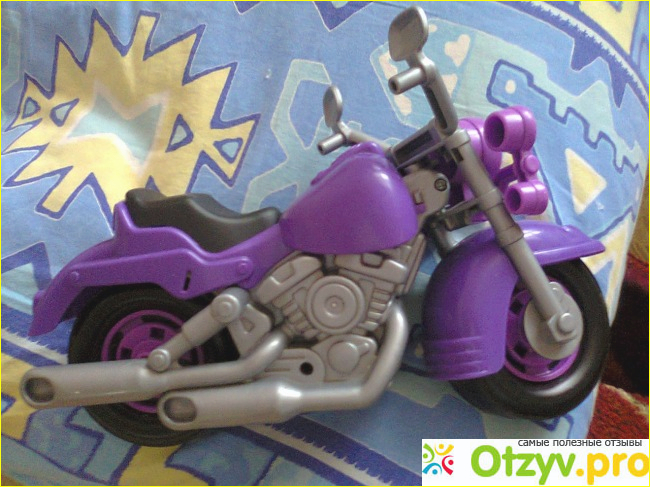 В магазине, где мы брали этот мотоцикл, особо выбора не было по оттенкам, были только вот такие как на фото - фиолетовые. А когда я зашла в другой магазин, то у меня просто глаза разбежались, каких только оттенков не было в наличие, даже чуть-чуть пожалела, что поторопилась и купила фиолетовый мотоцикл, но сыну кстати, и такой нравится, сначала не особо его брал в руки, а сейчас часто играет, почти что любимая игрушка.