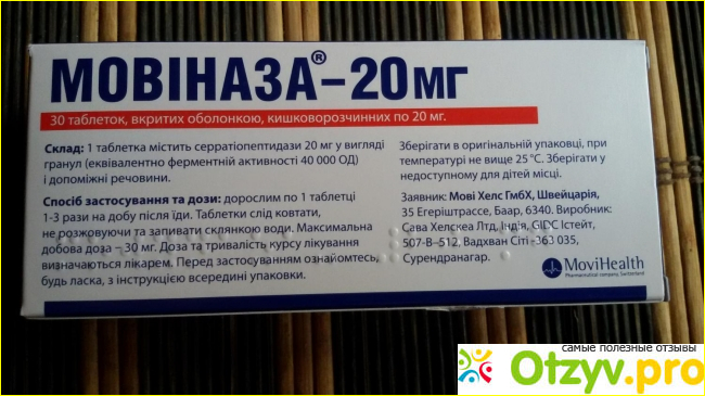 Мовиназа хорошее эффективное ферментативное средство, прекрасно помогает при многих заболеваниях. О нем положительно отзываются как врачи, так и пациенты прошедшие курсы терапии. Оказывает эффективное противовоспалительное, противоотечное и фибринолитическое действия.