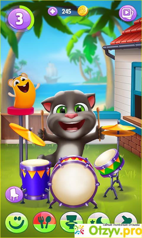 Из достоинств можно отметить множество мини игр , возможность, а така же как я уже говорил множество реакций Тома на ваши действия , красивая графика, идеальное управление со всем этим познакомит вас игра-Мой говорящий Том.