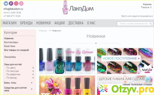 Зайдя на сайт, ты остаешься там надолго. Можно сидеть там часами и рассматривать плитки MoYou London, фото по тегу #СпасибоЛакоДому , а также свотчи лаков. Ведь очень часто интернет-магазины грешат тем, что нельзя увидеть точно цвет лака, а тут на каждый оттенок несколько вариантов свотча, что значительно возводит ЛакоДом выше других интернет-магазинов декоративной косметики для ногтей.