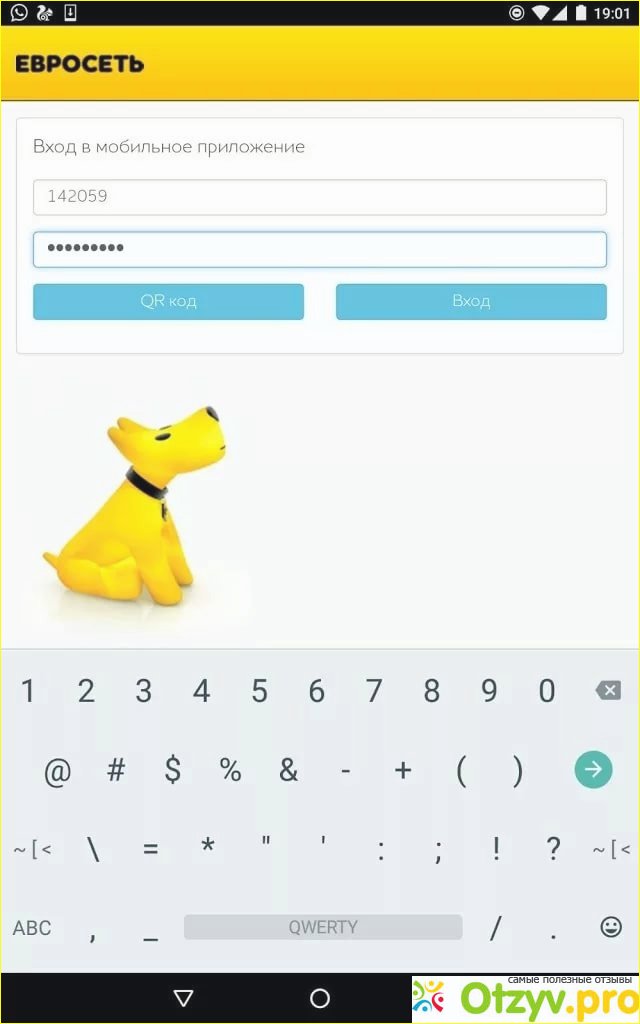 Основным символом приложения моя Евросеть является пес желтый.