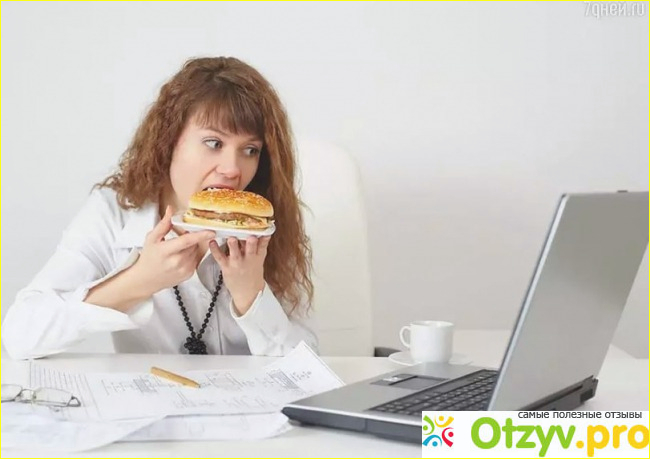 Не голодайте на работе, голодный желудок даст о себе знать. Можно есть совсем понемногу, но с короткими перерывами. Можете есть сухарики, фрукты, бананы- те вообще придают нам энергию и успокаивают аппетит.