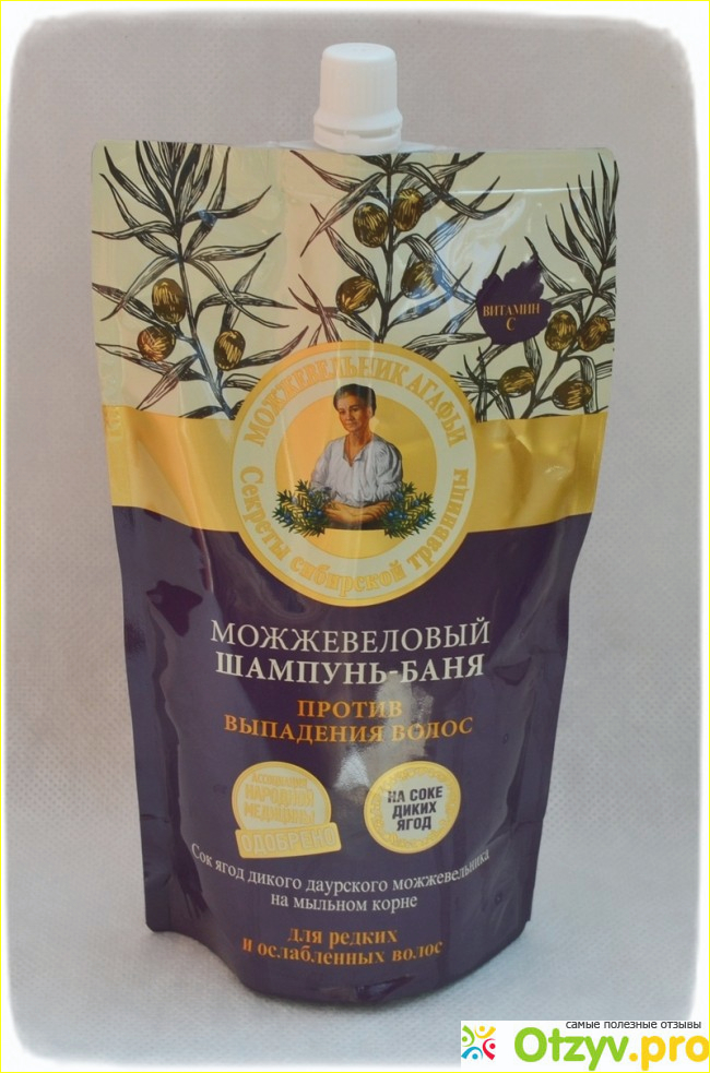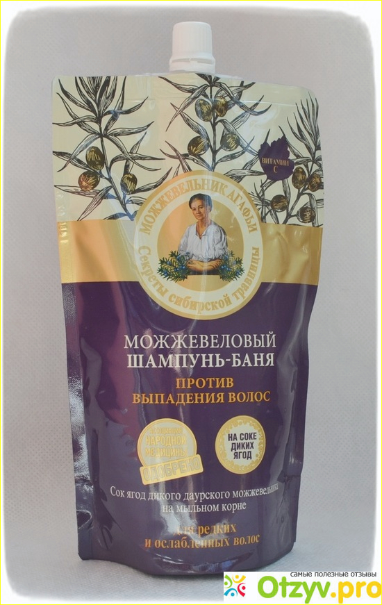 К псевдоорганическим продуктам под брендом "Банька Агафьи" или "Рецепты бабушки Агафьи" давно отношусь с настороженностью, но когда увидела в ФиксПрайс поллитровый пакет с можжевеловым шампунем-баней от выпадения волос того же производителя, решила попробовать. А что? Цена символическая, чем черт не шутит. :-) Тем более, что продукция фирмы "Первое решение" и так недорогая, а тут за счет бюджетной упаковки цену снизили до 49 рублей (у нас в городе так).