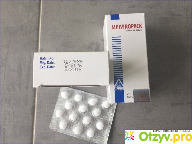 Mpiviropack - производит Египетская компания Marcyrl Pharmaceutical Industries имеющая лицензию на все дженерики препаратов от гепатита С. Препарат полный аналог Sovaldi (Совалди), разработанного и запатентованного американской компании Gilead Sciences, но гораздо более доступный по цене. В обоих средствах действующее вещество софосбувир, что стало вторым названием этих препаратов (Софосбувир, Sofosbuvir). Выпускается Mpiviropack в капсулах по 28 штук.