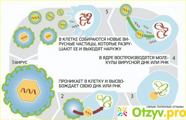 Попадая в организм, вирус гепатита реплицирует и выделяет определенные ферменты-белки РНК-полимеразы. Самыми важными из них являются белки NS5A и NS5В. Они отвечают за активацию размножения вируса и его распространение в организме. Софосбувир блокирует работу фермента NS5В, отвечающего за репликацию РНК вируса и гепатит перестает распространяться, так как вирус теряет возможность размножения.