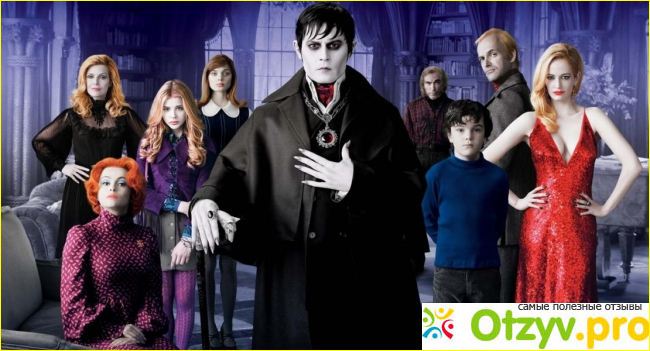 В общем, Барнабас выглядит старым и довольно милым, но периодически нападает на людей, причём ему мало одного-двух — убивает сразу с десяток, предварительно изысканно извинившись. Но семья относится к этому с сочувственным пониманием. Всё происходящее сопровождается жизнерадостной музыкальной подборкой и заканчивается опять возмутительной псевдоромантикой, после которой остаётся много вопросов к режиссёру. Из семейки Аддамс, то есть Коллинзов, не раскрыт по-настоящему ни один персонаж, хотя Мишель Пфайфер и Хлоя Грейс Морец создали интересные образы. То же самое можно сказать о Виктории, которая, как выяснилось, просто шла, шла и пришла. Отрывочные воспоминания её скучны, невнятны и мало вяжутся с обликом и манерой держаться. Больше всех повезло Еве Грин — её персонаж раскрыт настолько, насколько это требуется для фильма. Остальные сильно ущемлены, даже Джонни Депп, которому не удалось вытянуть на себе специфический замес слабенького театрального драматизма и неудачного комизма. Зачем преуспевающая ведьма два века сидела в крошечном рыбацком городке? Почему вампир оказался слабаком, а упокоившаяся мама мальчика сильнее здравствующей колдуньи? Каковы вообще ранги в бестиарии Тима Бёртона? Вызывает опасения судьба городка, в котором случайно сотворилось ещё два вампира. В реальности Бёртона они явно не заморачиваются диетами. И да, макияж в стиле «Трупа невесты» смотрится так себе.