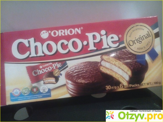 Я подыскивал принести что-нибудь к чаю довольно грациозное на праздник нашей фирмы! Вот, традиционно зайдя в магазин "Красное и белое", дверь которого - буквально соседняя по отношению к входной двери нашей фирмы, - я увидел прямо перед собой, на полке кассовой зоны, на уровне выше головы продавца, большую картонную пачку бисквитного лакомства под названием "Choco Pie", состоящую аж из двенадцати мини-порций пирожных! Я посмотрел на ценник ниже, и, увидев надпись, гласящую о том, что данное лакомство стоит девяносто восемь рублей, что вполне дешевле, чем в других супермаркетах, решил попросить эту коробку у продавца!