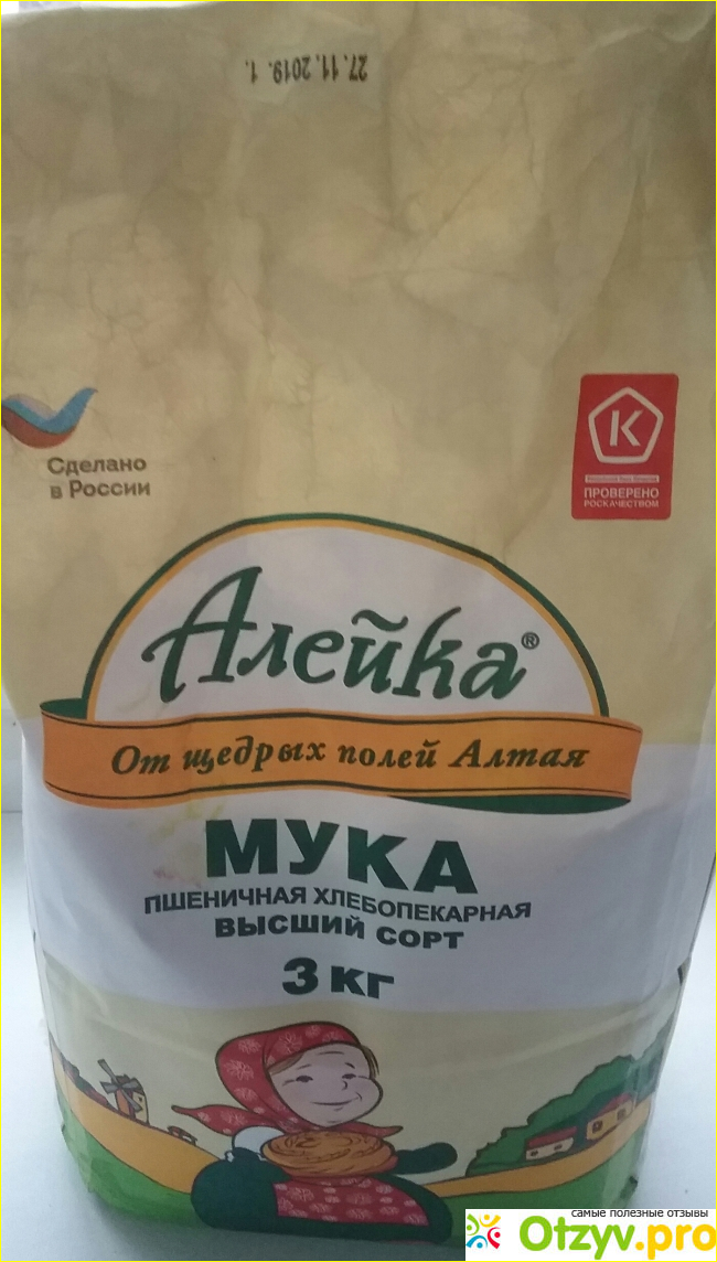 В январе 2020 года в гости к внукам мы ездили с мужем. В магазине "Быстроном" мы купили муку пшеничную хлебопекарную высшего сорта "Алейка".