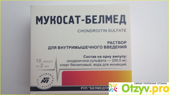 Мукосат является хондропротекторным средством и представляет собой 10%-ный раствор в воде сернокислого хондроитина, который получают из дыхательных путей крупного рогатго скота. Данное средство имеет хондропротекторные свойства, препятствует поражающему на сустав действию каликреина и папаина. Применение данного средства способствует торможению деструкционных процессов в суставе, усиливает пролиферативные свойства хряща и остеоцитарных клеток.
