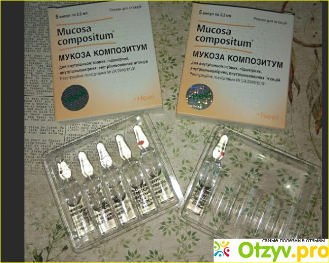 Мукоза Композитум - выпускается в виде ампул , в упаковочке, всего 5 ампул.