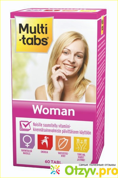 Мультитабс для женщин - это специальный витаминно-минеральный комплекс именно для женского организма. В состав этого комплекса входит не мало полезных компонентов, положительно воздействующих на здоровье и красоту женщины. Поливитамины содержат ассортимент витаминов и микроэлементов, в частности потребности молодых и среднего возраста женщин. Продукт содержит мм. фолиевая кислота и железо, чтобы способствовать формированию нормального гемоглобина, а также витамины группы В самые важные для организма, а так же необходимый витамин С, для устранения усталости и хронического истощения. Кроме того, в составе этих витамин присутствует необходимый для волос и ногтей биотин и цинк. Никаких вредных компонентов в этих витаминах нет, исключительно натуральные и качественные компоненты.