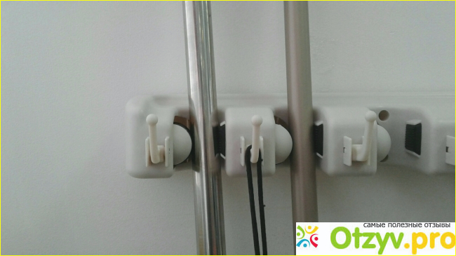 Теперь все метёлки и швабры аккуратненько висят на стене, а на крючки вешаю мешки, перчатки, садовые инструменты, пакеты с мусором. Немного жаль, что крючки пластиковые и выдерживают только 3 килограмма. Если бы мультидержатель был металлический — можно было бы ещё больше всего повесить. Но, зато, стоимость устройства невысока. Тем, у кого дома один веник и пылесос — не подойдёт, но остальным сослужит хорошую службу, рекомендую.