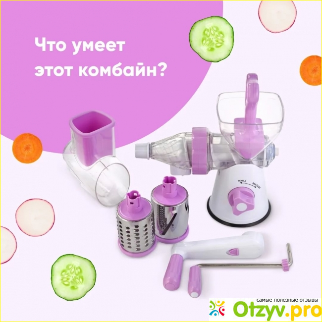 Если же говорить о недостатках такой модели. то это конечно же сложность переработки продуктов. Все-таки для того чтобы натереть и измельчить продукты вам придется прилагать не малые усилия. А также к недостаткам стоит отнести большой расход продуктов, особенно если готовить с помощью комбайна сок. Ведь все-таки очень много сока будет оставаться и выкидываться вместе с жмыхом.