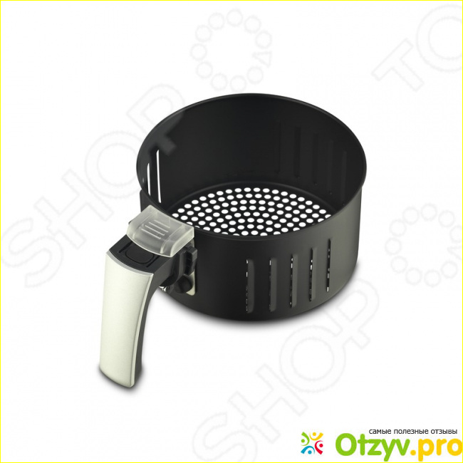 Безусловным достоинством такой модели является приготовления еды без использования жира. Пища готовится в чаще за счет циркуляции горячего потока воздуха. Но данная модель не единственная, которая позволяет готовить еду именно таким образом. В этой модели также предусмотрен таймер, который позволяет установить максимально время до 30 минут.