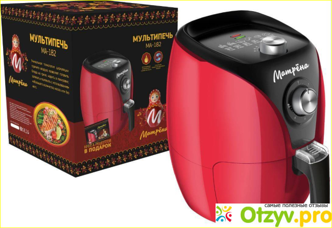 Этот прибор может заменить несколько приборов: кастрюлю, сковородку, микроволновку, духовку и пароварку. Принцип работы – в циркуляции горячего воздуха вокруг вложенного продукта. Есть чаша с антипригарным покрытием, объём которой – 2,6 л.