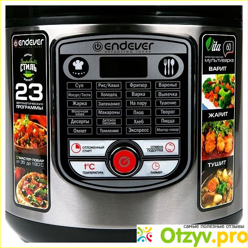 - множество программ - данная модель имеет 23 программы, которые можно выбирать в зависимости от того, что вы готовите, можно их регулировать на продолжительность процесса. Это позволяет значительно разнообразить свое меню.