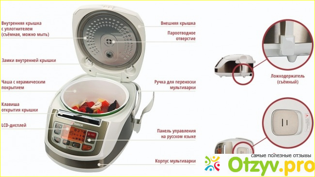 Еще одно неоспоримое достоинство - это откидная крышка. Она почти во всех мультиварках откидывается, но не во всех можно снять внутреннюю часть, чтобы помыть, а это очень важно, так как со временем силиконовая прокладка впитывает в себя запахи еды, а помыть крышку не снимая ее очень сложно.