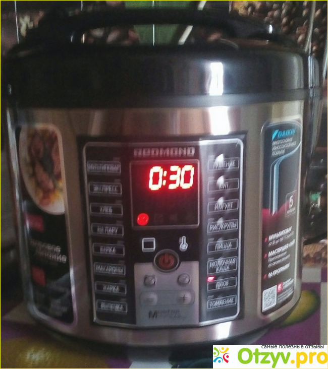 Вариант RMC-M25 подошел как нельзя кстати. Меню так расположено на корпусе, что прочитать функционал и разобраться может даже человек со слабым зрением. Скажу сразу – еще не пробовала включать режим выпечки, пиццы и хлеба. Остальное весьма востребовано и полезно для жизни, в том числе походит для диететического питания . Большое спасибо производителю