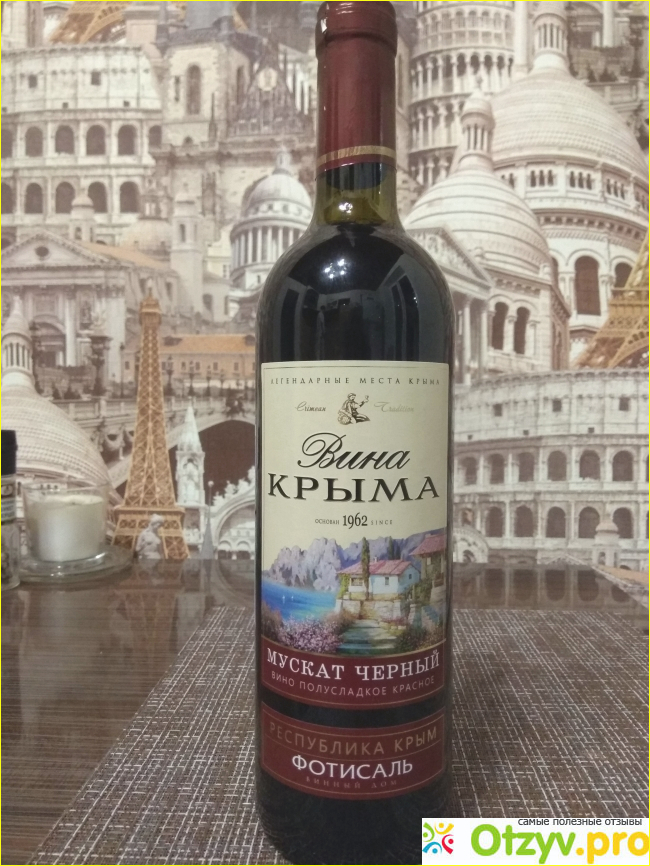 После долгих раздумий и передвижений по винным отделам и специальным магазинам, а так же после многочисленных советов и прочитанных отзывах на легкие вина, дрожащими руками была выбрана бутылочка красного полусладкого вина Мускат Черный от винного дома Фотисаль, производство которого находится в Республике Крым, Бахчисарайский район, д. Танковое.