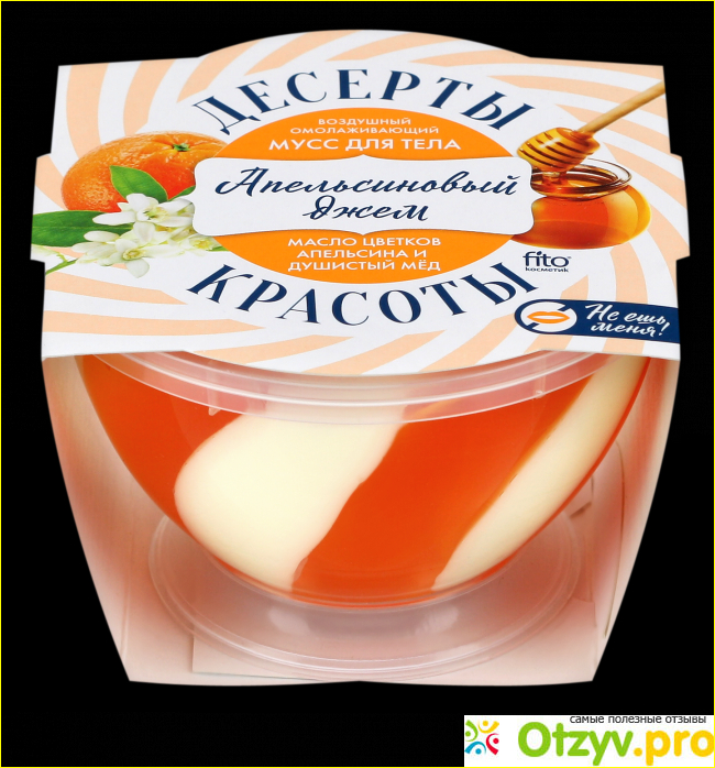 Мне мусс понравился очень. С удовольствием наношу его на свою кожу после принятия душа, или ванны. Кожа моментально впитывает его, жирные следы не остаются. Аромат надолго сопровождает всё моё тело, и это не может не понравиться. Действительно настоящее лакомство для кожи тела. Планирую попробовать ещё какие-нибудь средства из этой серии. По стоимости этот товар очень привлекателен. Коробочка средства обошлась мне всего в 120 рублей. Хватает его надолго, так как много намазывать не нужно. Товар российского производства, что тоже очень приятно. В баночке два разных вида средства, выложены поочерёдно. Прозрачный, оранжевый, нежнейший и воздушный гель чередуется с плотным белым кремом. Выглядит и пахнет очень вкусно, слюньки текут! На коробочке даже указано: " не ешь меня!". В баночке 220 грамм. Рекомендую попробовать это лакомство для кожи, оно никого не оставит равнодушным.
