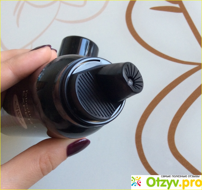 Под крышечкой дозатор чёрного цвета и удобной вытянутой формы. Имеет специальные отверстия, через которые мусс легко и свободно выходит наружу.