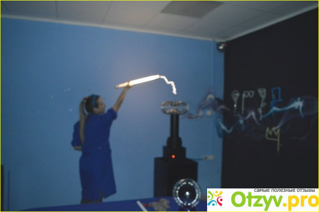 Есть еще очень темный зал. В нем проводят опыты с электричеством! Здесь наглядно показывают, как электричество проходит сквозь тела, как сделать молнию и многое другое. Это действительно красиво и зрелищно.