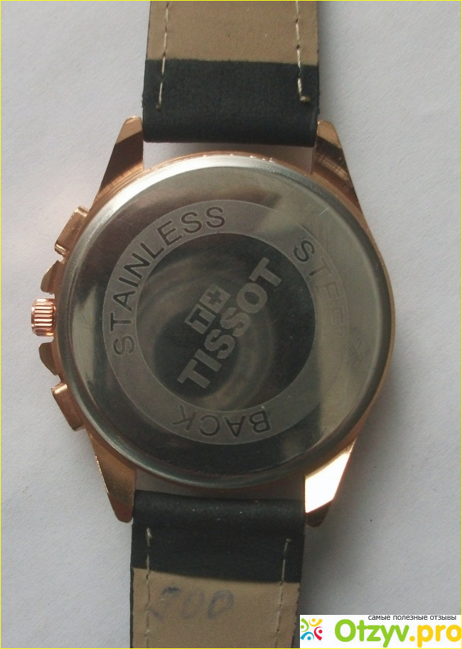В целом китайский "Тиссот" сделан похоже на подлинник. Конечно, тот кто разбирается, отличит подделку сразу, стреляного воробья на мякине не проведешь, и это не сложно. В этих часах даже дополнительные циферблаты, (маленькие), выполняют чисто декоративную роль - они не работают. Но выглядят часы на руке солидно. Время показывают довольно точно, всё- таки кварцевый механизм. Стоят недорого, всего 300 рублей.. Не одноразовые. Питание от "таблеточной" батарейки Lr 626, заменить которую можно легко самостоятельно, для чего нужно лишь "отковырнуть" нижнюю крышку. На фото это видно.