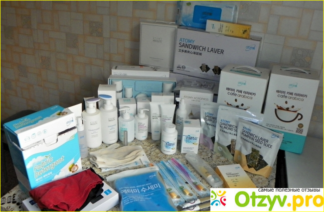 Во-первых, я как дистрибьютор была зарегистрирована там и в моих интересах накопить личные поинты для дальнейших доходов. На минуточку оговорюсь, сделала заказ за пол года более чем на 100 тысяч рублей для личного пользования. Так что успела попробовать много продукции и у меня есть что сказать. И да, поведаю вам только правду! То о чем другие промолчат! Не люблю теоретиков и пустых слов, я человек практик и человек дела. Смотрим одну треть моего заказа в Атоми на фото: