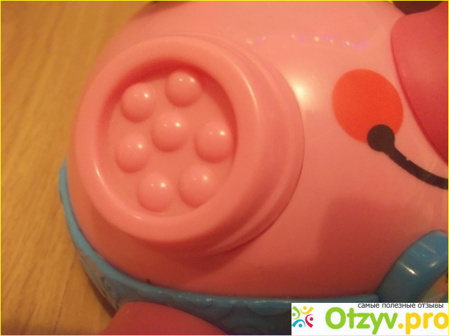 Эта игрушка классная для развития сенсорного восприятия-тут разные фактуры и рельефы, она веселит ребенка, которому больше 6 месяцев. В движение ее приводит нажатие на носик-кстати очень сложно это сделать ребенку, только я нажимала.