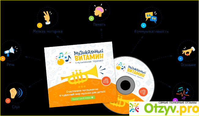 Методика записана на диске. Для воспроизведения подойдет любой компьютер или ноутбук. Автором занятий является Марина Медведева, которая имеет педагогическое и музыкальное образование, а также многолетний опыт работы с детьми и в детских коллективах. Музыкальный витамин прошел апробацию, на которой показал высокие результаты. Поэтому эффект от занятий будет обязательно. Мы заметили первые результаты уже через три дня. Сын прекрасно реагировал на музыку и с удовольствием выполнял все упражнения. В его словаре начали появляться новые слова.