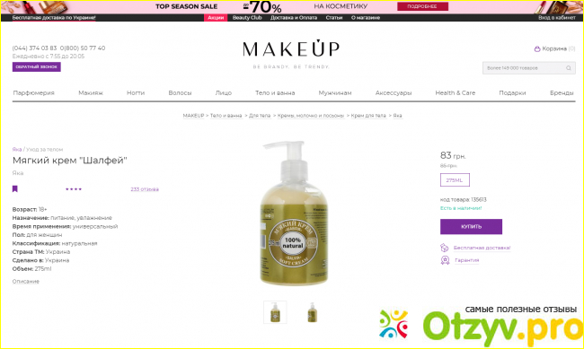 Средство покупала для ухода за всем телом, потому что чато от воздуха и ветра сушит, все стянутое, раздражение. Подкупила как цена, так и приличный объем, а это 275 мл всего лишь за 230 рублей. Масса очень легкая и нежная, быстро впитывается и не оставляет после себя никакого эффекта присутствия, здорово насыщает и питает, придает шелковистость, бархатистость кожному покрову.