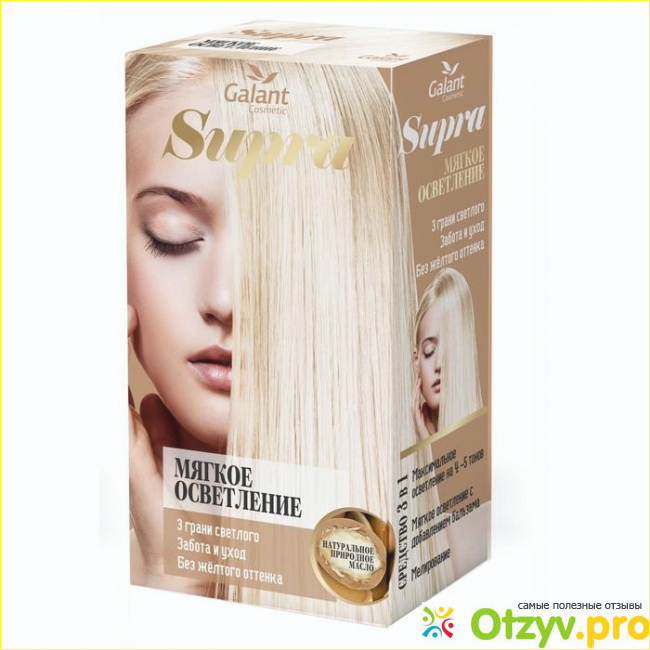 В магазине мне посоветовали мягкий осветлитель Супра. Очень боялась, что будет еще хуже, от рыжего перейду в желтый. Осветлитель по привлекательной цене, с красивой блондинкой на упаковке. В пачке имеется все необходимое для окрашивания. Одноразовые перчатки, порошок, окислитель, даже специальный бальзам, чтобы после вымыть голову.