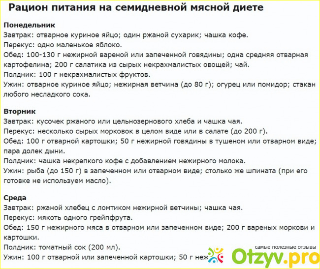 Не зависимо от того, питаетесь вы просто правильно или сидите на диете мясной, все равно важно принимать к сведению то, что любому взрослому человеку важно ежедневно употреблять примерно 500 грамм продуктов, в которых есть белок. Тут конечно не одно мясо, а кефир, сыры, творог, молочные и кисломолочные продукты, морепродукты и рыбу, бобовые, орехи и другие. Зависимо от того сколько вы сможете просидеть на такой диете, вы сможете скинуть от четырех до восьми килограмм.