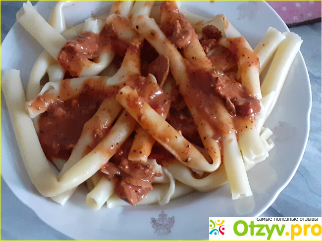 Соус достаточно густой, чувствуются кусочки мяса. Неплохое мясо, как раз курочку люблю.