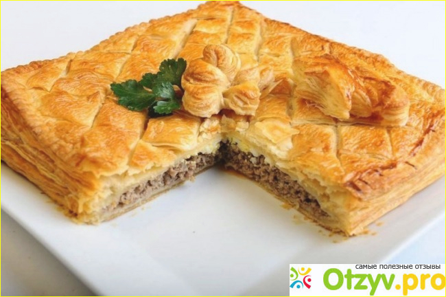 У меня мама когда-то делала самые вкусные пироги на слоеном тесте и с мясной начинкой. У меня помню как первое время ничего не получалось. Была загвоздка с начинкой, получалось не так сочно и ароматно, как бы того хотелось. А так же вкус у начинки был пресный. Но со временем методом проб и ошибок все же я добилась того идеального вкуса, о котором и мечтала. Сам пирог получается пышным за счет слоеного теста и сочным, так как в фарше я часто использую овощи. Пирог у меня готовится быстро, примерно 45 минут, потому что тесто тонкое.