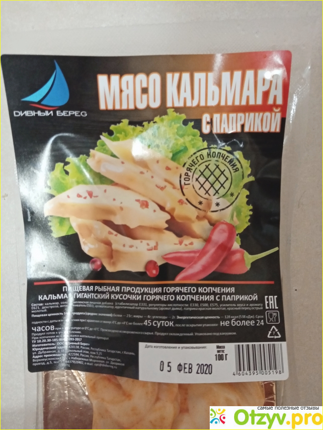 Торговая марка Дивный берег, судя по всему, не очень дорожит своей репутацией, так как товар, а в данном случае кусочки копчёного кальмара, мне попался мягко сказать не очень хороший. От упаковки за версту несло тухлятиной. Поправлюсь, после вскрытия герметичо запаянной упаковки по кухне поплыл тухлый рыбный запах. Это при том, что срок годности был в норме, да и сам по себе срок годности небольшой. Копчёным от кусочков также не пахло-пересоленные кусочки не понятно чего, густопосыпанные сверху паприкой.
