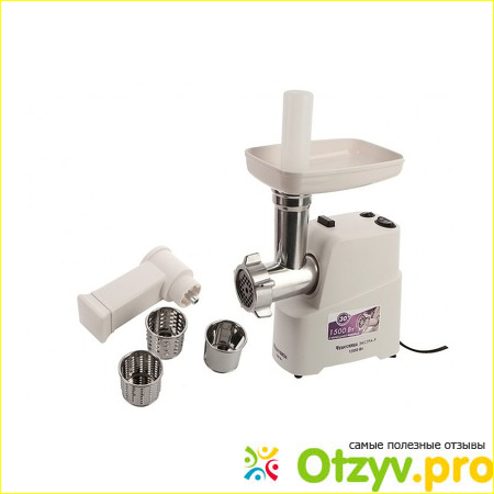 Мы читали, так что могу сказать: многие покупатели остались при хорошем мнении от пользования ею. Конечно указывается в негативном что она дешевая, без наворотов, без нескольких сеточек, чтобы можно было выбрать и сделать разный по размеру фарш.