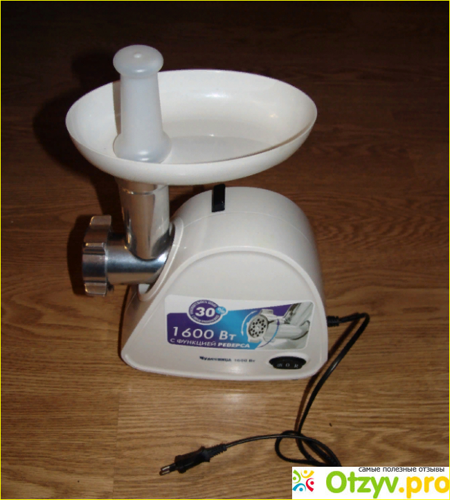 - мощность очень малая, всего 1500 Вт, для мясорубок это означает, что ему трудно будет справляться с твердыми продуктами, он не сможет прокрутить жесткое мясо, косточки, жилы, и прибор будет постоянно заедать