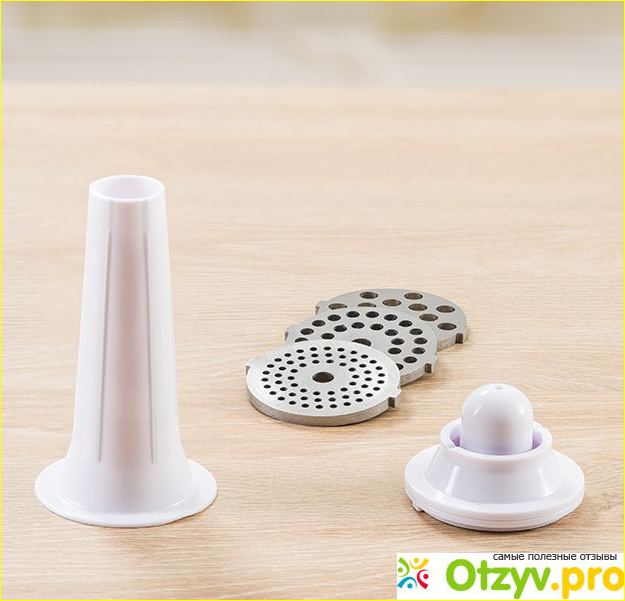 Имеются три алюминиевые насадки для измельчения любого вида продукта, это средняя, мелкая и крупная насадка, таким образом, можно изготавливать такой фарш, который необходим для определенного блюда.