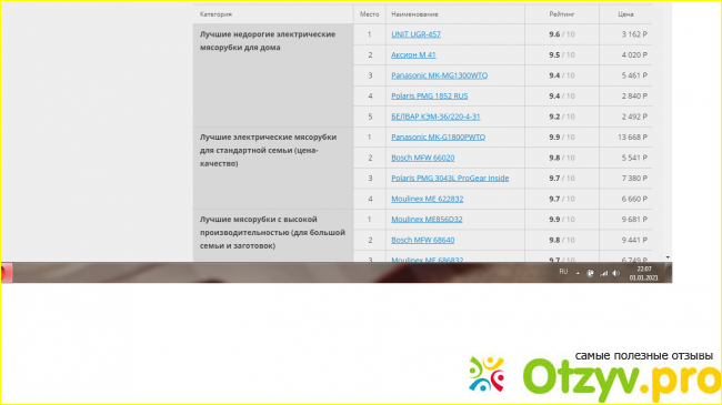 Дальше покажу рейтинг электрических мясорубок. Он составлен как с учетом технических характеристик, так и отзывов людей, уже купивших товар, составив свое мнением о нем.