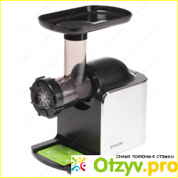 Почему выбрала именно эту модель, сказать не могу - просто поддалась на хорошую рекламу (консультант-продавец знает свое дело), а еще что шнек у нее керамический ( не нагревается, значит не перегревает мотор, не нагревает фарш и сок, керамика легко моется простой водой, от фруктов красится, выглядит красиво) и работает тихо, запросто можно спать при ее работе (мой супруг любит поспать в обеденное время, работа агрегата ему никак не мешает).