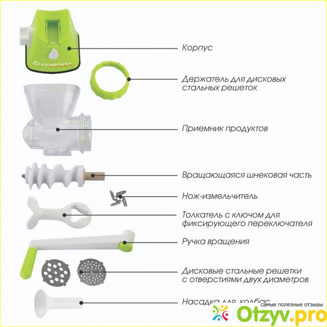 Первое, что меня поразило в этой мясорубке – это современный дизайн. Честно говоря, я и подумать не могла, что обыкновенная ручная мясорубка может выглядеть так стильно и привлекательно. Далее продавец мне показал комплектующие детали данной модели.