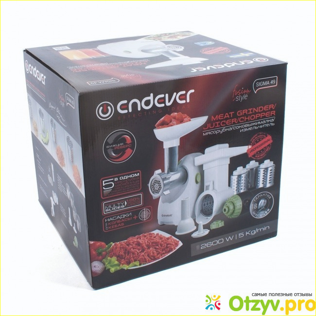 Мы с женой очень рады такому подарку как мясорубка, хоть ней мы и не часто пользуемся, но с ней значительно быстрее можно справиться с приготовлением еды. У нас уже дома есть практически вся необходимая для готовки техника, вот только таких мелочей как мясорубка не хватает. Не знаю точно цену мясорубки, но на сайтах видел что до 7 тысяч рублей можно купить. За такую небольшую сумму данная покупка полностью оправдывается. Через несколько лет, я думаю, ни у кого дома не будет ручного инструмента, все стает автоматизированным и это радует. Еще с детства помню как неохотно было перекручивать мясо на фарш ручной мясорубкой. Понятное дело что нельзя все дела перекинуть на машины, но такие как приготовление еды очень даже нужно делать. Нам с женой хватает одного часа чтобы приготовить еды на целый день вперед, а то и на больше дней. У нас есть маленький ребенок, ему и так не хватает моего внимания, постоянно на работе, а если бы еще и пришлось самому убирать/готовить, то вообще не замечал бы как он растет, а растут дети очень быстро. У меня иногда такое чувство что через неделю это уже не мой ребенок, так все быстро меняется. Наши родители (я говорю про детей ранних 90-х годов) просто изумительные люди, они умудрялись все успевать, и на детей, и на готовку, и на уборку, и на работу им времени хватало. Может конечно всему виной является телевизор и интернет, вот даже сейчас я сижу за компьютером вместо того чтобы сделать что-нибудь полезное, люди обленились и устают от легкой работы, это конечно нездорово. Я все это к тому что техника нового поколения, в том числе и данная мясорубка, очень и очень облегчает нашу жизнь, но не надо забывать что и физический труд полезный человеку. Немного отвлекся от главной темы, перейду непосредственно к описанию работы мясорубки Endever Sigma 49.
