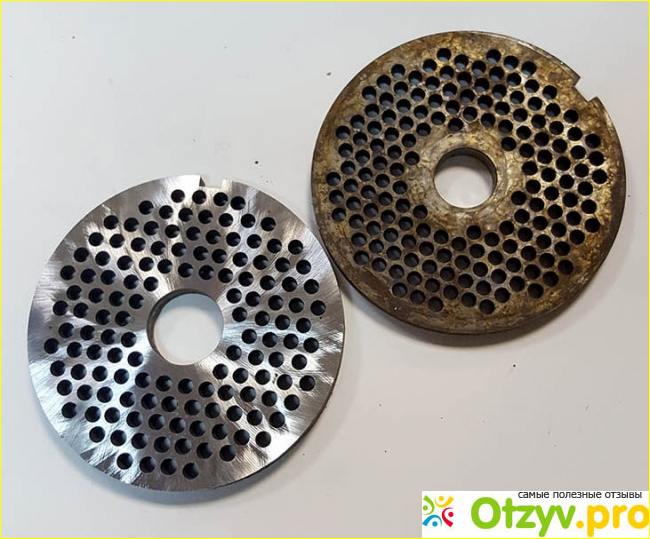 Ножи и решетки мне можно было бы носить точить на работу, но стыдно такое г.... показывать людям, правда ржавчину мастер в мастерской мне убрал путем шлифовки, на данный момент эта проблема решена, но после мойки решетки я вытираю полотенцем, а затем еще сушу и храню отдельно от прибора. Было желание одно время сушить феном!