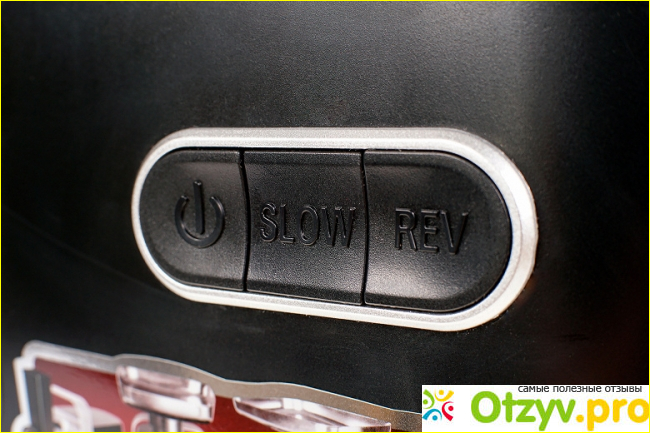 Кнопка включения сразу запускает механизм на предельную скорость. Если необходимо её снизить, следует нажать кнопку slow.