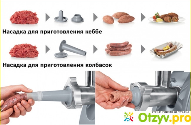 А вот плюс данной модели мясорубки в том, что в наборе идет целых 3 насадки. Таким образом с их помощью можно готовить разные блюда, а так же делать домашнюю колбасу! Я всегда мечтала о том, что бы самой делать колбаску, и кушать ее без всяких добавок, вредных компонентов.