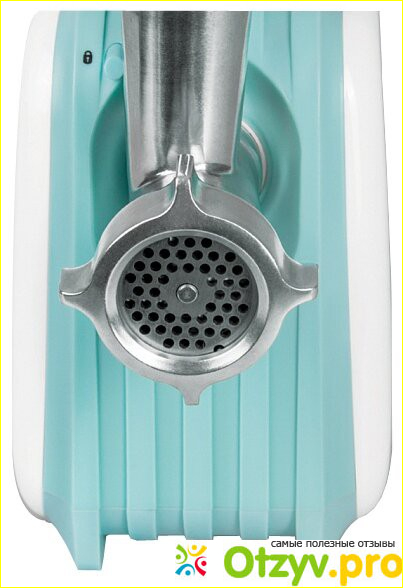 Данная мясорубка достаточно мощная и показывает высокую производительность, поможет буквально за пару минут перемолоть мясо и сделать из него нежный и мелкий фарт. В комплекте есть две насадки (диски) на которых отверстия имеют различный диаметр и толкатель, который разбирается. Предусмотрен очень хороший лоток, куда можно насыпать необходимое количество продуктов для подачи в отверстие для измельчения. Прибор работает достаточно тихо, не будет мешать в процессе работы.