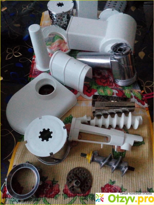 Что касаемо качества сборки прибора, то корпус у мясорубки выполнен из пластика белого цвета. Сам пластик достаточно толстый и не имеет постороннего запаха. Но сказать, что прибор имеет идеальное качество сборки тоже нельзя. Например, в некоторых местах пластик сильно скрипит. И общий вид у этой модели довольно простой. Также довольно часто у покупателей возникают сложности с тем, чтобы надеть или поменять насадки. Иногда для этого приходится прилагать не мало усилий.